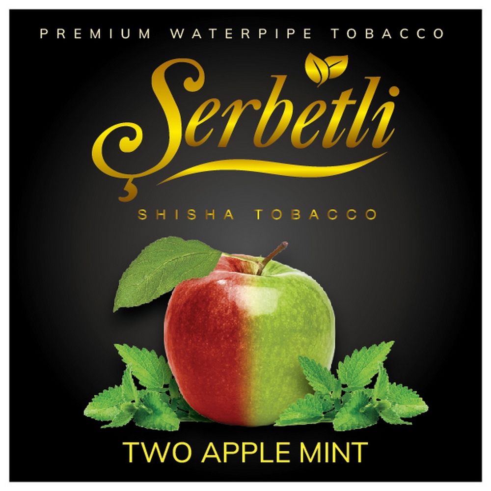 Тютюн Serbetli Two Apple Mint (Подвійне Яблуко М'ята) 100гр виготовляється виключно з натуральних та якісних компонентів. Не містить барвників та сольового нікотину. В основі продукту лежить тютюновий листок преміального сорту. Суміш не містить сміття та великих гілок. Підходить для куріння кальяну на класичних чашах як з глини, так і з силікону. Тютюн відмінно переносить жар вугілля, легко відновлюється при перегріванні.