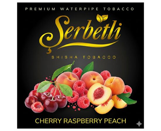 Тютюн Serbetli Cherry Raspberry Peach (Вишня Малина Персик) 50 гр відрізняється невеликим рівнем міцності та яскравим, натуральним смаком. Підходить для новачків, або любителів кальяну, які люблять повільне ароматне куріння. Виготовляється виключно з натурального тютюнового листя, яке проходить відбір та очищення. Виробник рекомендує використовувати класичну чашу з глини чи силікону.