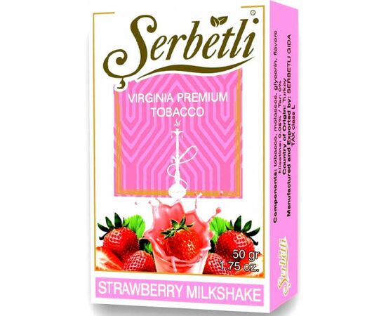Тютюн Serbetli Strawberry milkshake (Щербетлі Полунично-молочний шийк) 50 грам відрізняється соковитим та ніжним смаком, відмінно куритися в соло. Виробляється продукт у Туреччині з кращої та добірної сировини. Найкраще смакові якості курильні суміші для кальяну розкриваються при використанні чаші з глини. Заправка для кальяну показує відмінні якості по жаростійкості та димності. Невелика міцність підходить і для новачків, і для досвідчених любителів кальяну.