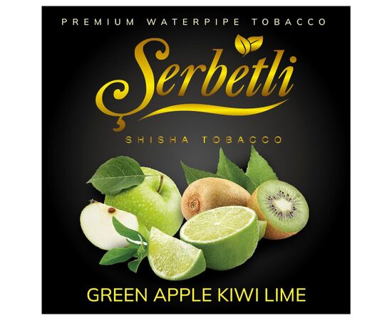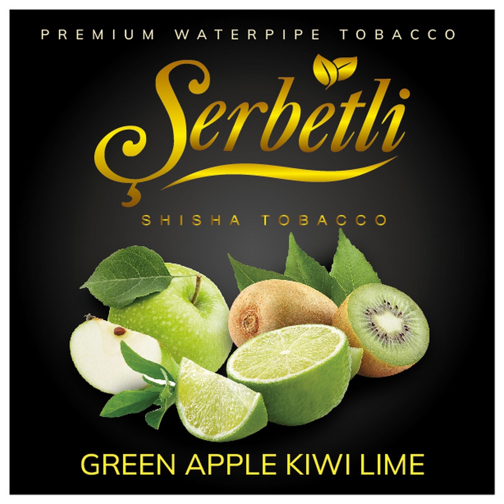 Тютюн Serbetli Green Apple Kiwi Lime (Зелене Яблуко Ківі Лайм) 500 гр виготовляється виключно з натуральних та якісних компонентів. Не містить барвників та сольового нікотину. В основі продукту лежить тютюновий листок преміального сорту. Суміш не містить сміття та великих гілок. Підходить для куріння кальяну на класичних чашах як з глини, так і з силікону. Тютюн відмінно переносить жар вугілля, легко відновлюється при перегріванні.