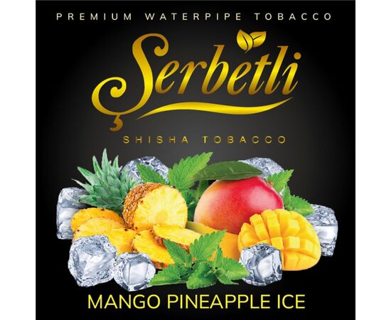 Тютюн Serbetli Ice Mango Pineapple (Манго Ананас Льод) 500 гр - якісний продукт для куріння кальяну, що постачається в економічній упаковці. Смак екзотичних плодів манго та ананасу розкривається максимально ефективно у глиняній класичній чаші. Тютюн характеризується невеликим рівнем міцності, який виходить натуральним способом із преміального тютюнового листа Золота вірджинія.