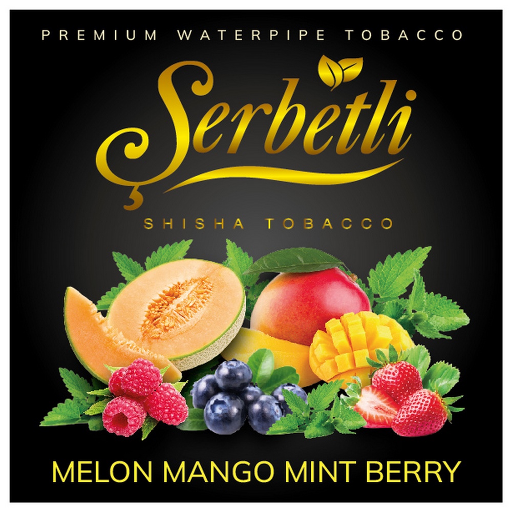 Тютюн Serbetli Melon Mango Mint Berry (Диня Манго М'ята Ягоди) 500 гр виготовляється з високоякісного та натурального тютюнового листя преміального сорту. Заправка для кальяну має натуральний колір, барвники не використовуються. Якість курильної суміші відповідає міжнародним стандартам. Для смаку використовують високоякісні ароматизатори для харчової промисловості. Виробник рекомендує використовувати глиняну чашу для максимального розкриття смаку.