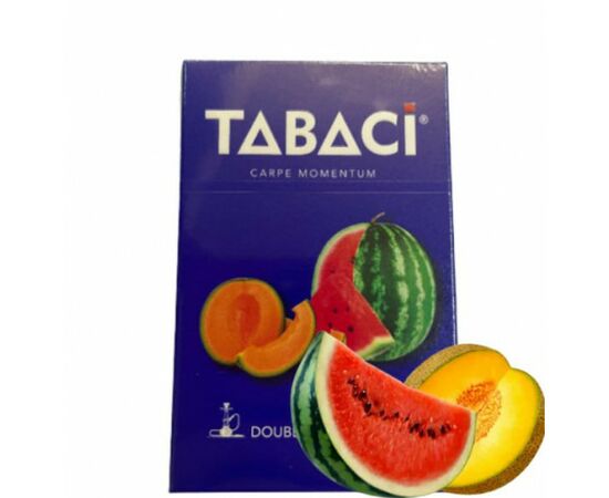 Тютюн Tabaci Double Melon Flavour (Табаці Кавун Диня) 50 грам виробляється в ОАЕ з кращої сировини із застосуванням передових технологій. Продукт вирізняється свіжим поглядом на традиційні смаки. Курильна суміш утворилася з урахуванням побажань любителів кальяну. Заправка для кальяну розрахована на широке коло покупців, має невисокий рівень вмісту нікотину. Для максимального розкриття смакових властивостей, виробник рекомендує використовувати глиняну чашу.
