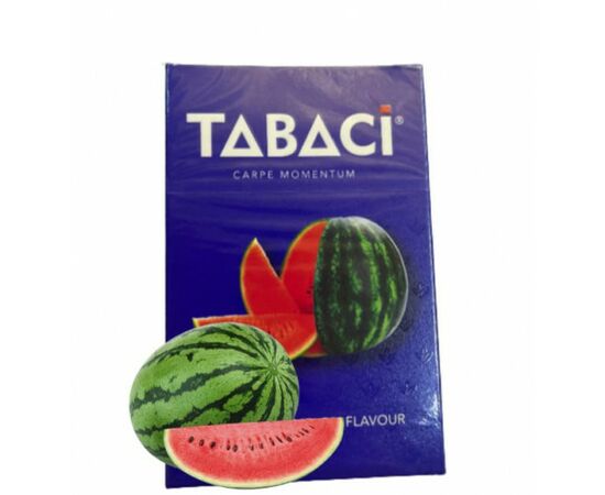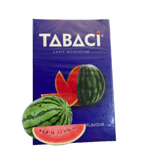 Тютюн Tabaci Watermelon Flavour (Табаці Кавун) 50 грам виробляється в ОАЕ з кращої сировини із застосуванням передових технологій. Продукт вирізняється свіжим поглядом на традиційні смаки. Курильна суміш утворилася з урахуванням побажань любителів кальяну. Заправка для кальяну розрахована на широке коло покупців, має невисокий рівень вмісту нікотину. Для максимального розкриття смакових властивостей, виробник рекомендує використовувати глиняну чашу.