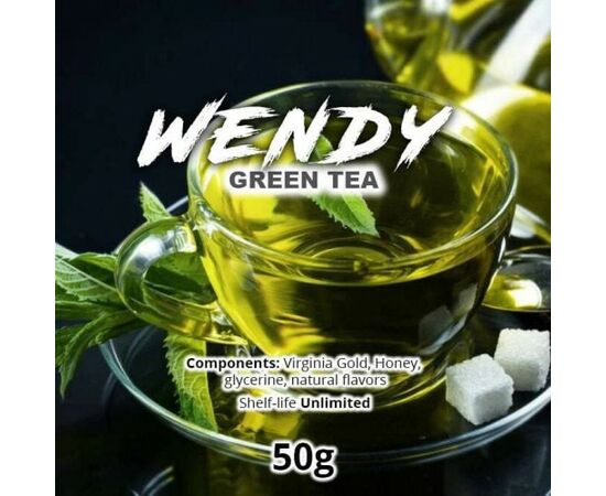 Wendy Green Tea. Терпкий смак зеленого чаю. Заправка для кальяну Wendy випускається у бюджетному сегменті, проте, у її складі знаходяться інгредієнти преміальної якості. Виготовляється тютюнова суміш із високоякісного тютюнового листа Вірджинія, а також із натуральних ароматизаторів. Під час куріння відчувається яскравий аромат, доповнений ароматним тютюновим смаком.