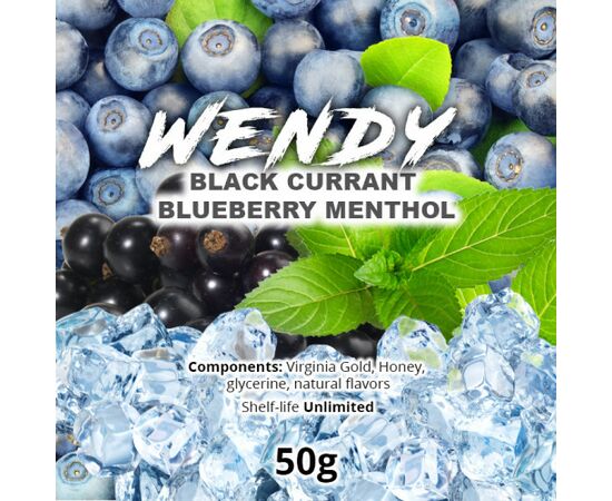 Wendy Ice Black Currant Bluberry Mentol. Поєднання ягід чорної смородини та чорниці ідеально доповнено приємною м'ятною ноткою. Заправка для кальяну Wendy випускається у бюджетному сегменті, проте, у її складі знаходяться інгредієнти преміальної якості. Виготовляється тютюнова суміш із високоякісного тютюнового листа Вірджинія, а також із натуральних ароматизаторів. Під час куріння відчувається яскравий аромат, доповнений ароматним тютюновим смаком.