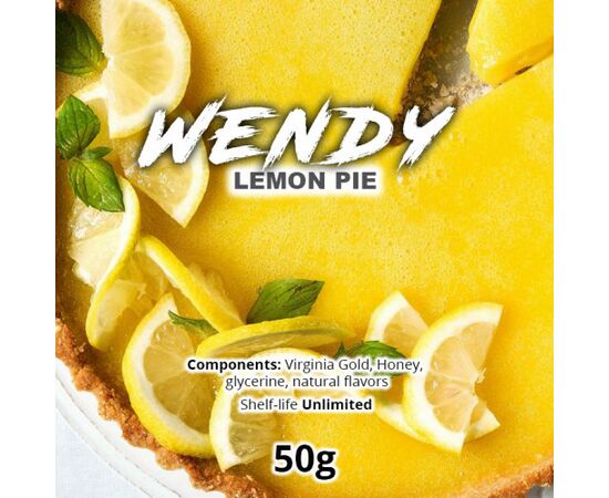 Wendy Lemon Pie. Свіжа ароматна випічка з приголомшливим лимонним смаком. Заправка для кальяну Wendy випускається у бюджетному сегменті, проте, у її складі знаходяться інгредієнти преміальної якості. Виготовляється тютюнова суміш із високоякісного тютюнового листа Вірджинія, а також із натуральних ароматизаторів. Під час куріння відчувається яскравий аромат, доповнений ароматним тютюновим смаком.