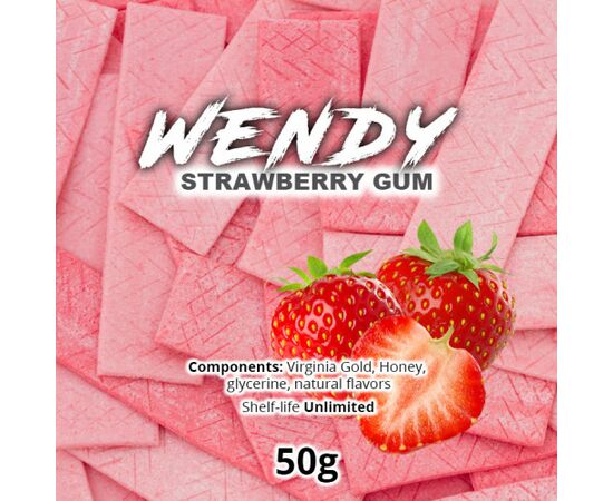 Wendy Strawberry Gum. Ароматна полунична жуйка, приємно здивує Вас і принесе масу задоволення. Заправка для кальяну Wendy випускається у бюджетному сегменті, проте, у її складі знаходяться інгредієнти преміальної якості. Виготовляється тютюнова суміш із високоякісного тютюнового листа Вірджинія, а також із натуральних ароматизаторів. Під час куріння відчувається яскравий аромат, доповнений ароматним тютюновим смаком.