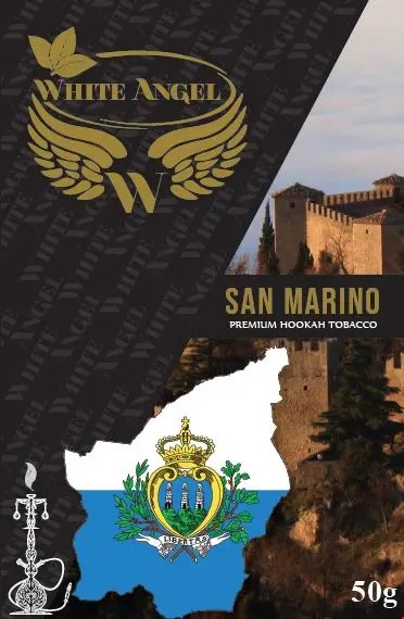 Тютюн White Angel San Marino (Білий янгол Сан Маріно) 50 грам виготовлений з кращої сировини, під час куріння ви відчуєте яскравий та насичений аромат ананасу та манго з м'ятою. У виробництві використовується натуральний мед, як основа для сиропу, а також ароматизатори Німецького виробництва та гліцерин з Малайзії. Моассель має невисокий рівень фортеці, тютюн добре переносить жар вугілля, під час куріння виділяється багато диму. Нарізка листа Вірджинія Голд дрібна.