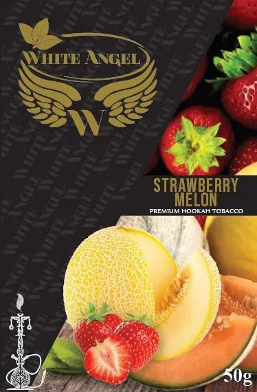 Тютюн White Angel Strawberry Melon (Білий янгол Полуниця Диня) 50 грам виготовлений з кращої сировини, під час куріння ви відчуєте яскравий та насичений аромат. У виробництві використовується натуральний мед, як основа для сиропу, а також ароматизатори Німецького виробництва та гліцерин з Малайзії. Моассель має невисокий рівень фортеці, тютюн добре переносить жар вугілля, під час куріння виділяється багато диму. Нарізка листа Вірджинія Голд дрібна.