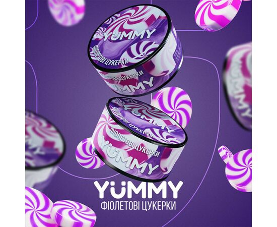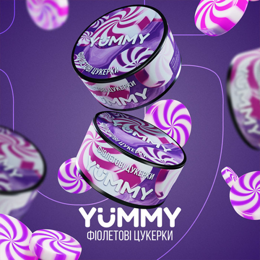 Тютюн Yummy Фіолетові Цукерки (Ягідні Цукерки) 100 грволодіє відмінними курильними властивостями, виробляється виключно з якісної та натуральної сировини, не містить барвників та сольового нікотину. До складу суміші входять виключно високоякісні ароматизатори, які використовуються у харчовій промисловості. Рекомендується курити заправку для кальяну на глиняній чаші, вона допоможе максимально розкрити смак та аромат.